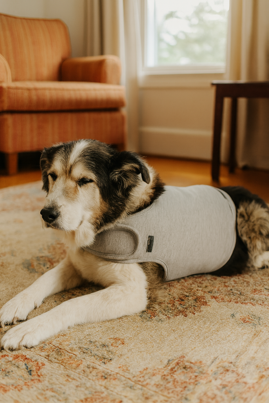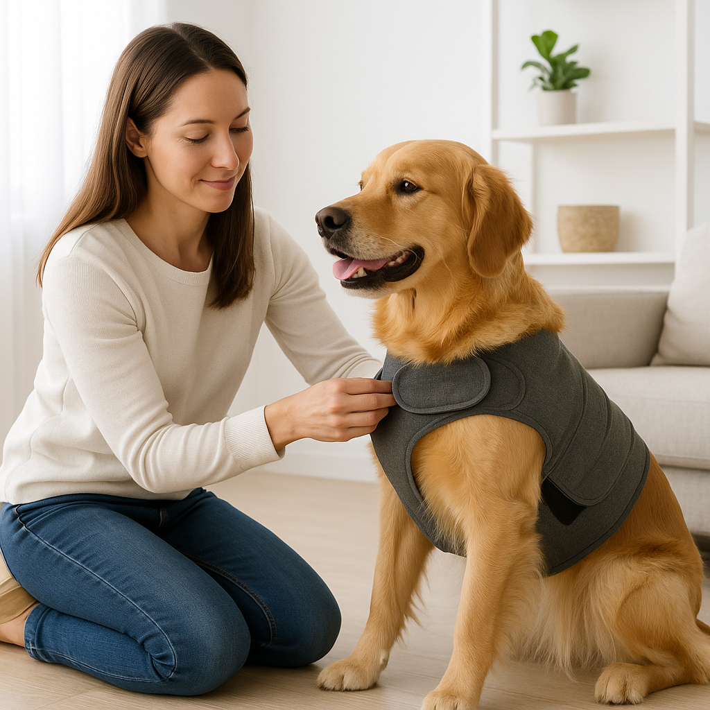 Is your dog trembling during storms, fireworks, or when left alone? This gentle vest calms them in minutes — without drugs